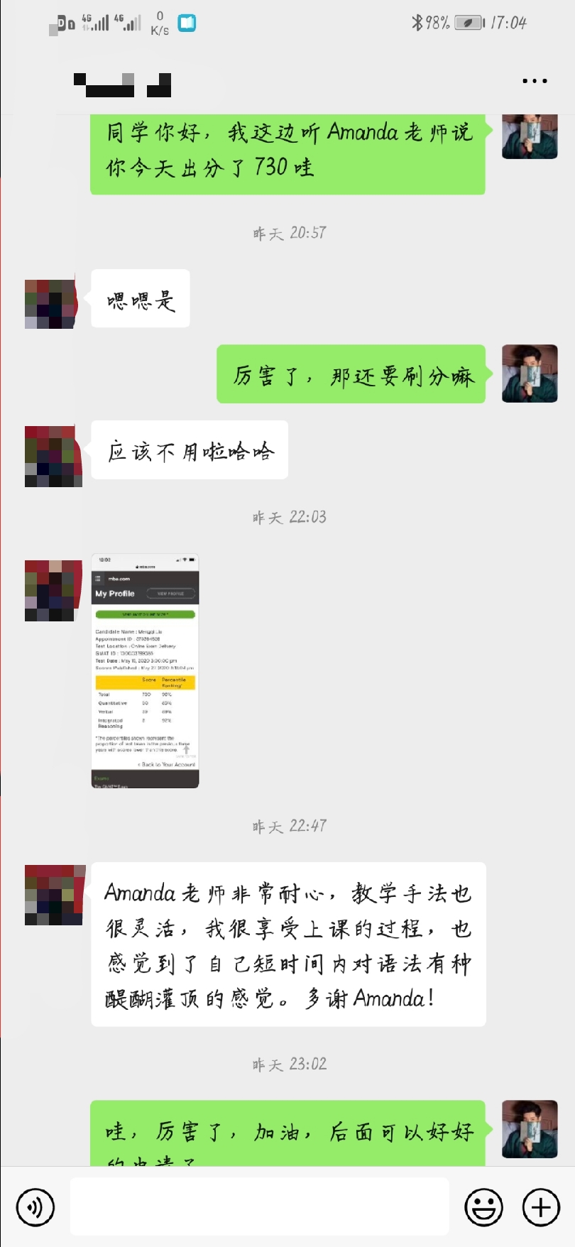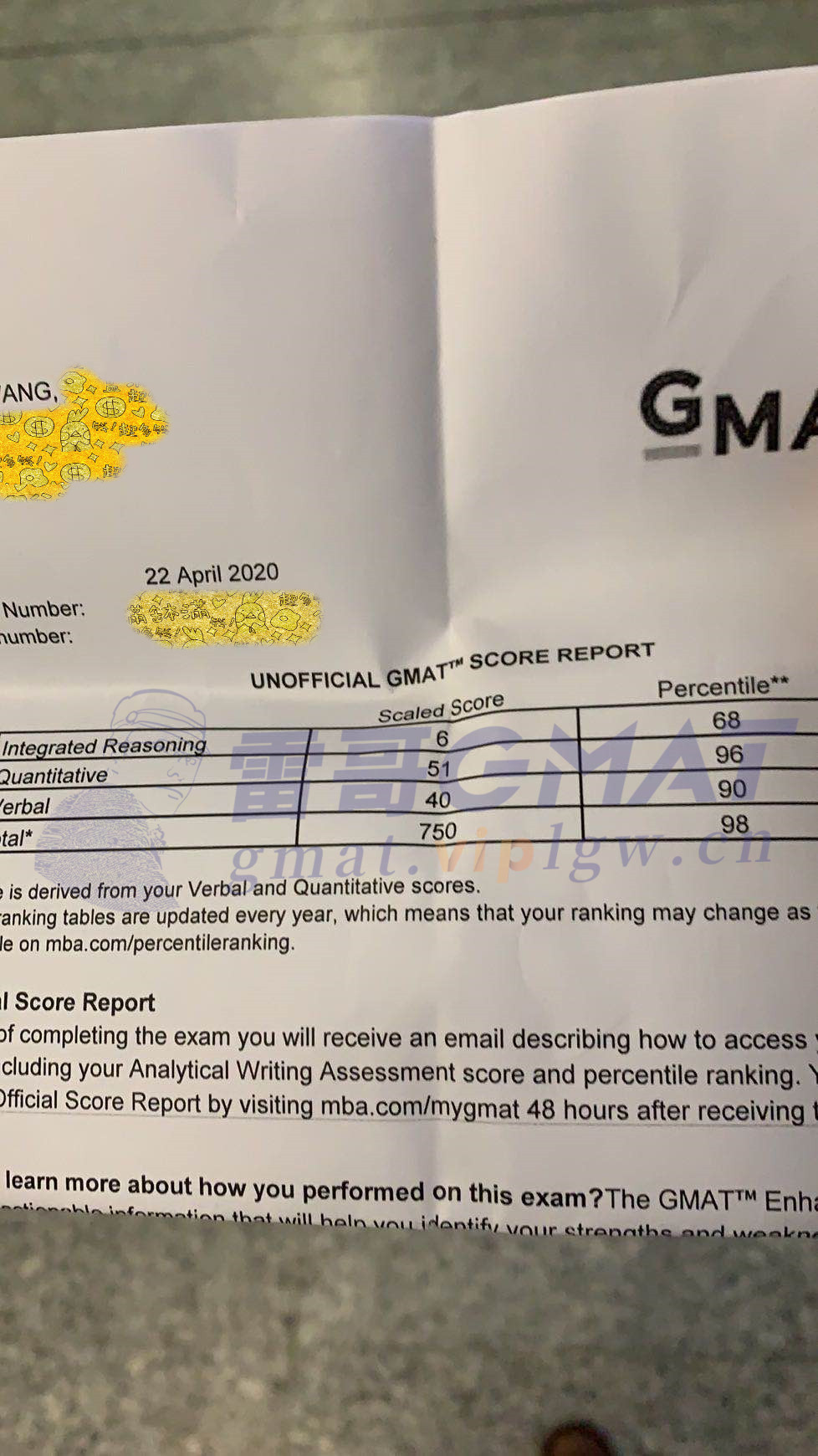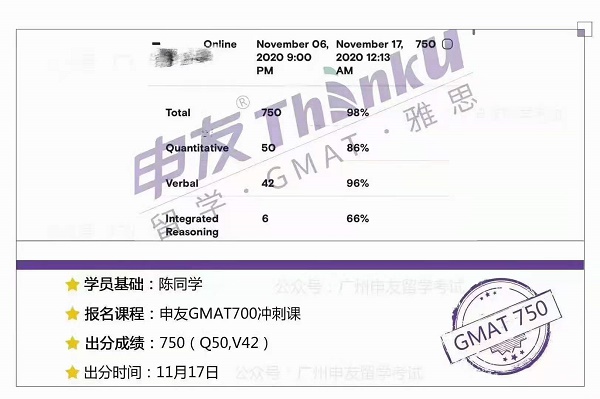 GMAT冲刺班,陈同学一站分出750,恭喜!