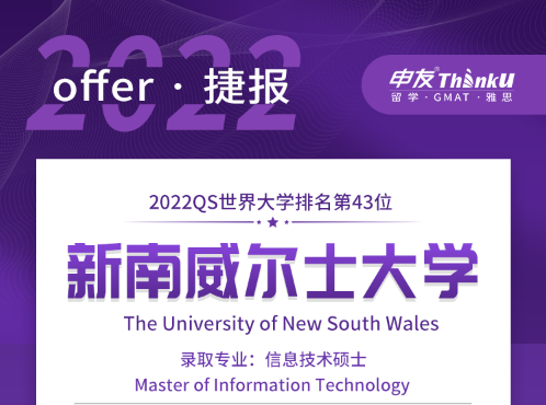 恭喜西安申友留学郭同学,收到新南威尔士大学Master of Information Technology录取offer