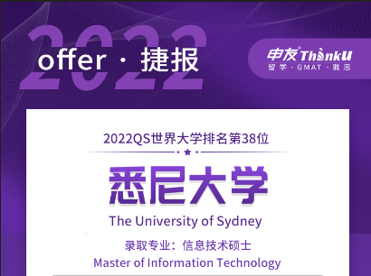 恭喜西安申友留学郭同学,收到悉尼大学的 Master of Information Technology录取